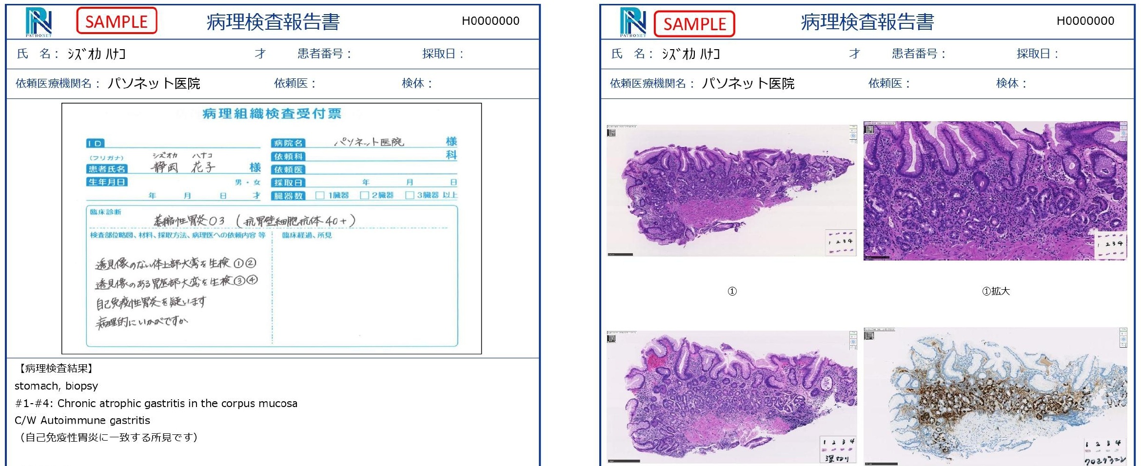 経験豊富な病理医に検査を依頼するため、信頼と責任ある同一レベルの検査結果報告書をお届けすることが可能となります。