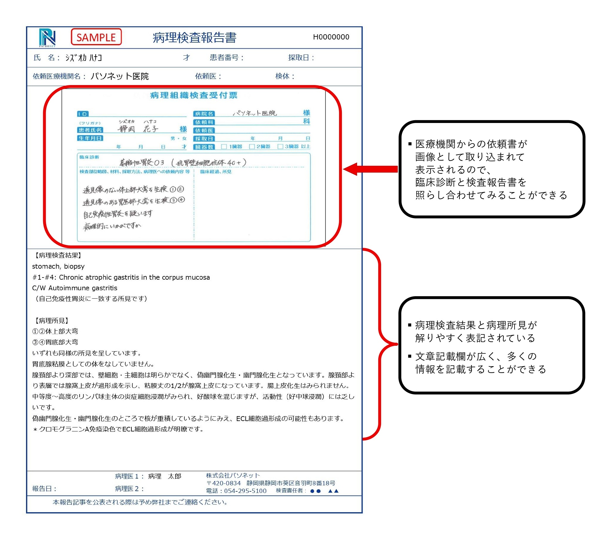 弊社の病理医が病理検査報告書を作成し、お届けいたします。